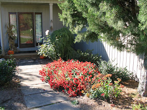 Its moving on towards the end of October and I wanted to remember what these flowers looked like and try to figure out what they are called. I seem to recall these guys are some sort of Japanese plant.  For the last two years the one closest to the driveway had died in September.  The others seem to hang in there.